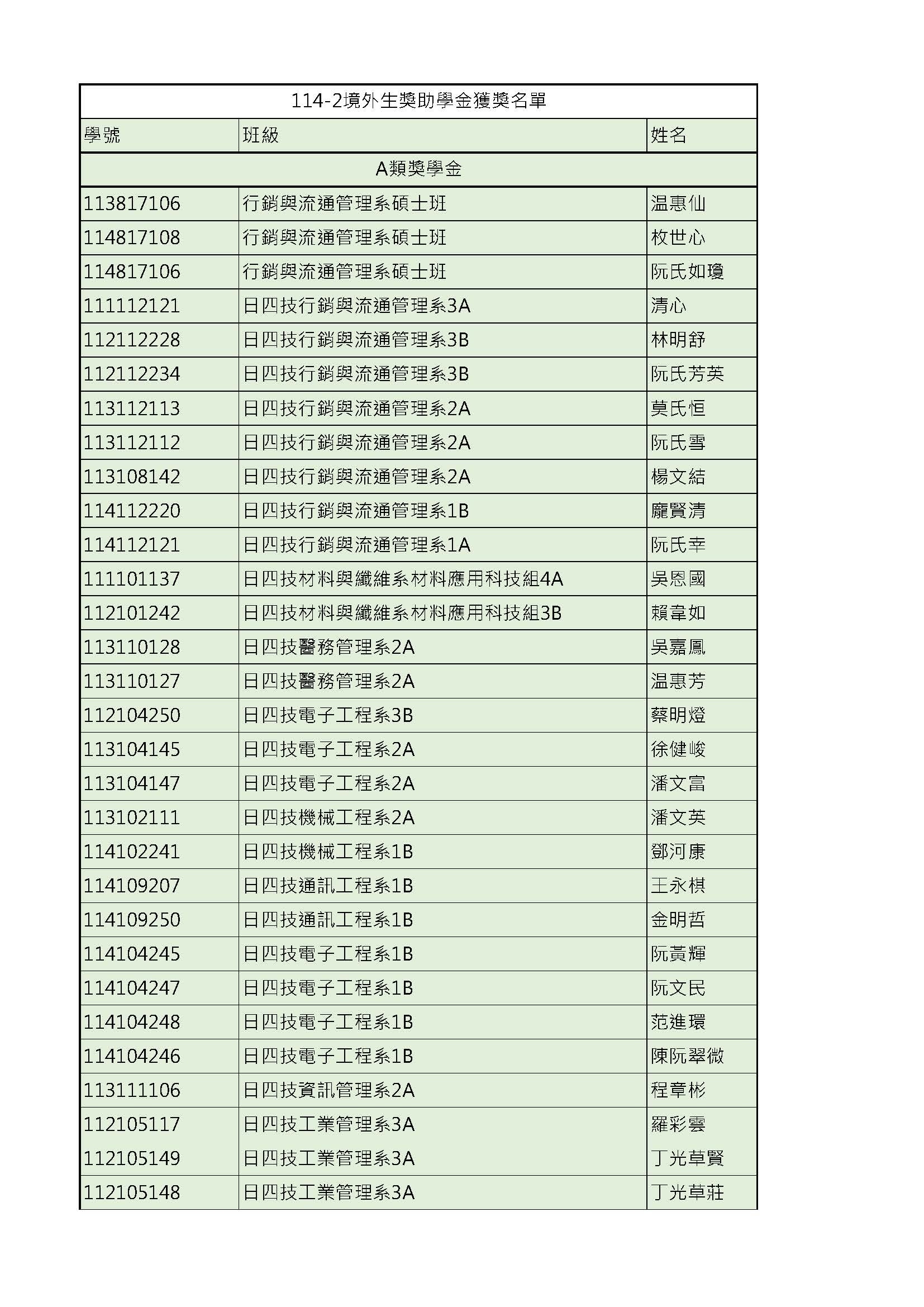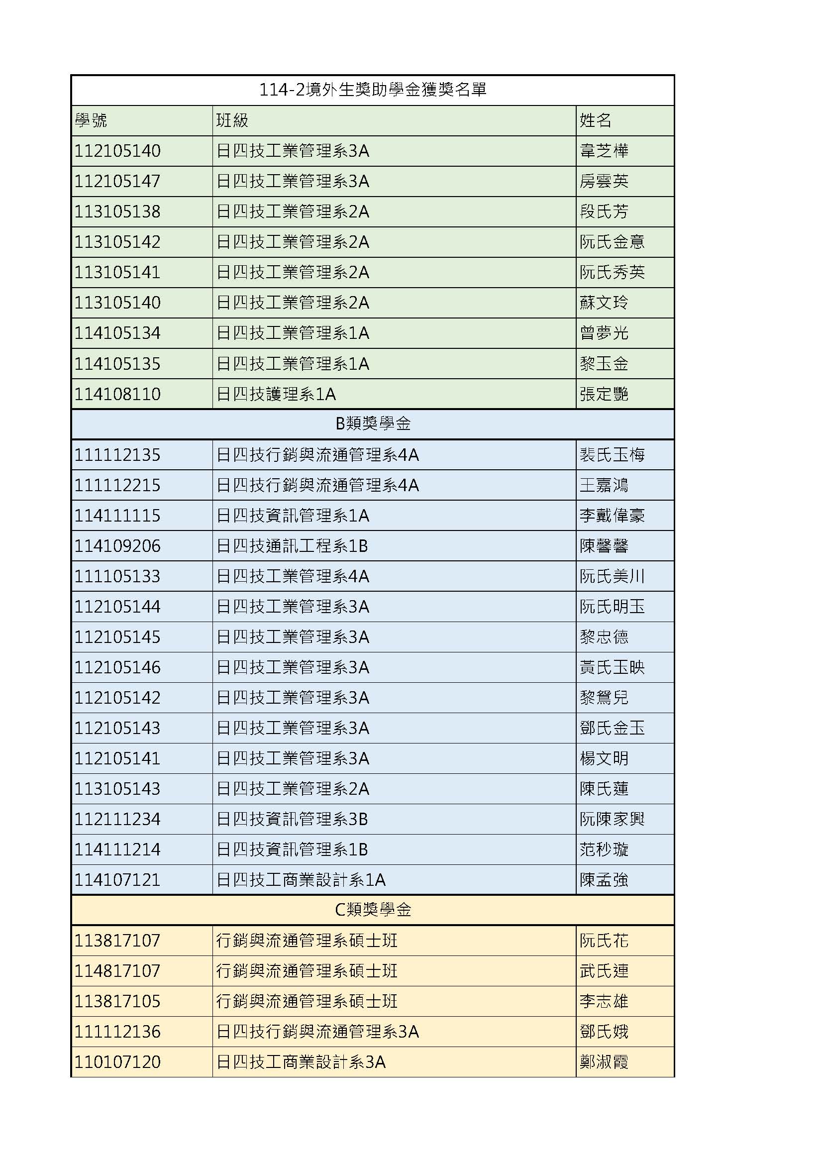 【獎助學金公告】114-2鼓勵境外生就學獎助學金申請通過名單